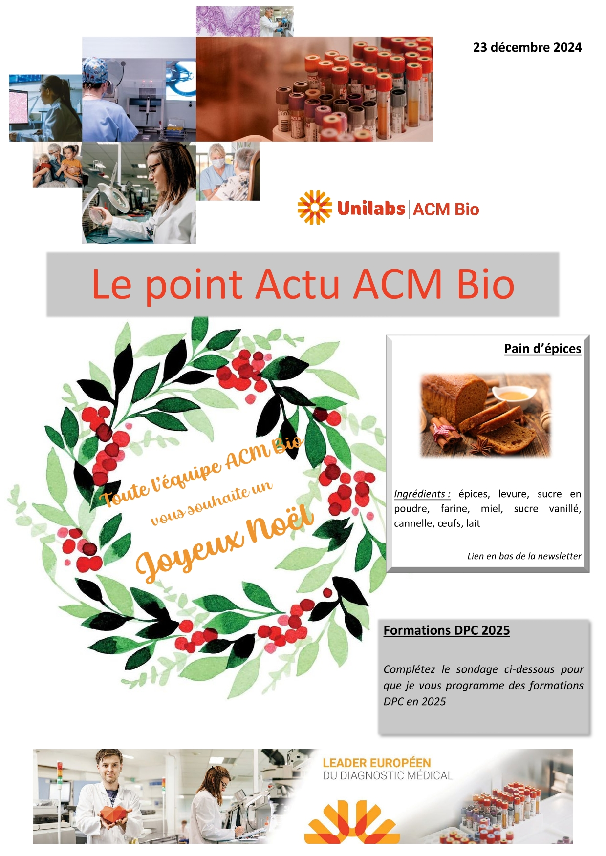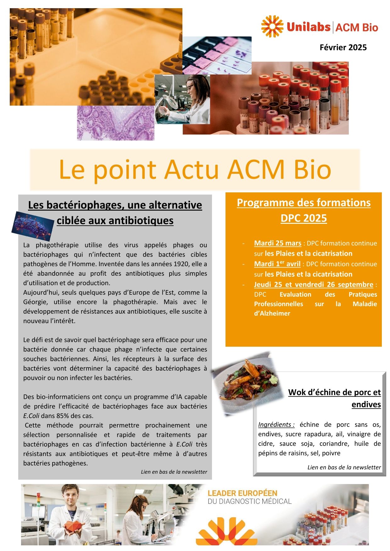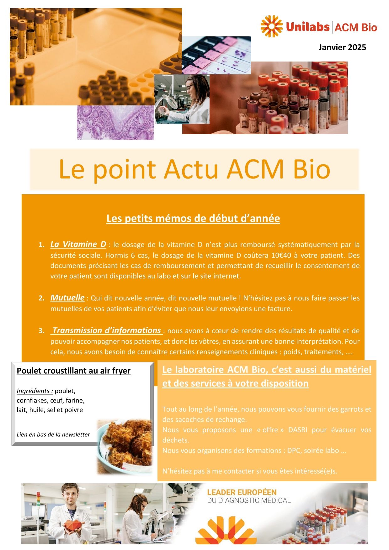 Le laboratoire ACMBIO UNILABS transmets les analyses de microbiologie et bactériologique au laboratoire BIOLAB UNILABS. Les recommandations pré-analytiques et les délais de rendu de résultats sont disponibles sur le catalogue en ligne de BIOLAB:
